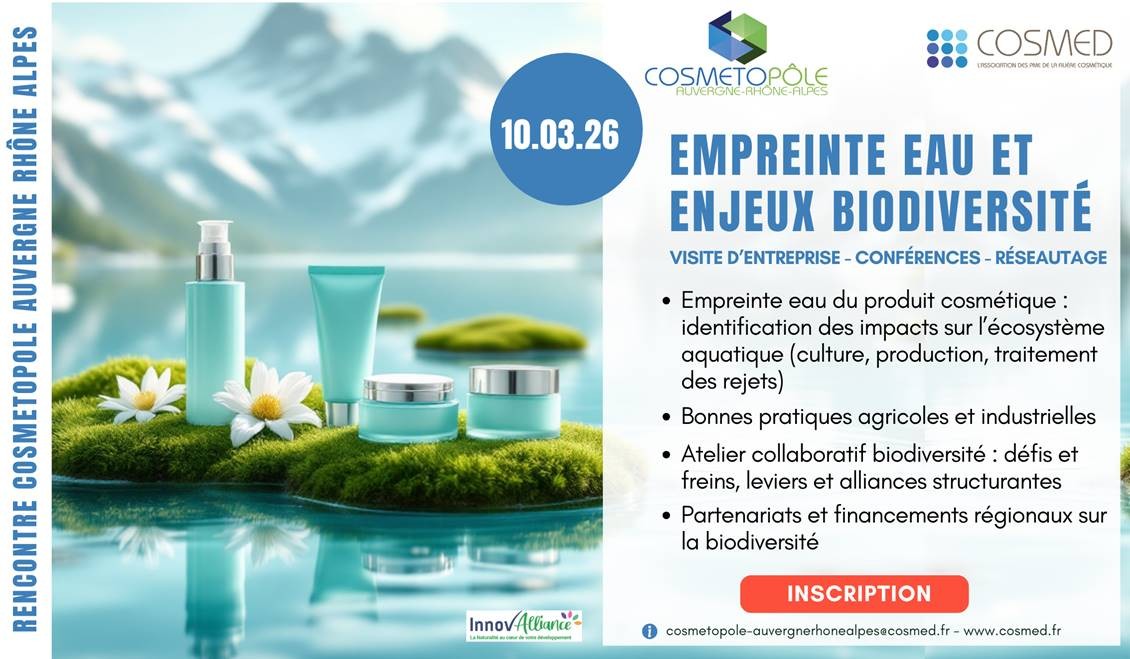 Participez le 10 mars 2026 à cette rencontre professionnelle sur le thème de la biodiversité et de l’empreinte eau en cosmétique :