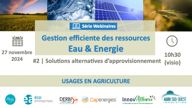 Les pôles Aqua-Valley, Agri Sud-Ouest Innovation, Capenergies, Derbi, Innov’Alliance et le cluster Éa éco-entreprises vous proposent une série de webinaires pour parler des enjeux eau et énergie.
